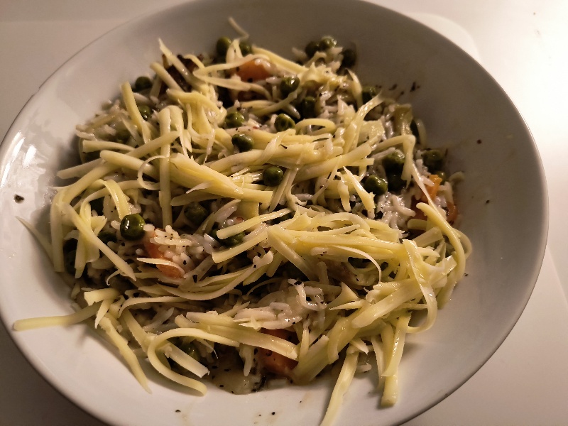 A basmati rizst négy-öt vízben átjöblítem. Egy bögre rizst felteszek főni kettő bögre tisztított vízzel. Hozzáadom a hagymát, zöldborsót, és a répát és együtt főzöm a rizsel addig amíg teljesen elforrja a levét. Amikor telj... Teljes poszt megtekintése